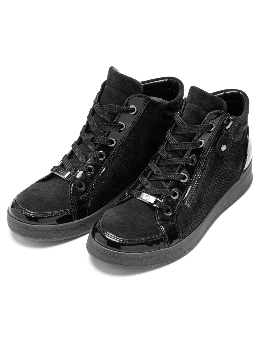 Ez a bokacsizma igazi kényelemről árulkodik! A puha bőr csodálatos megjelenést kölcsönöz, amely azonnal magával ragad. A cipő különösen kényelmes a szár puha, körkörös párnázásának köszönhetően, amely megakadályozza a kellemetlen nyomáspontokat. A fém fűzőlyukakkal ellátott fűzőrendszer és az oldalsó cipzár megkönnyíti és gyorssá teszi a fel- és levételt. A puha, bambusz alapú frottír bélés valóban kellemes érzést biztosít. Ez az anyag nagyon kényelmes viseletet biztosít, és jó lábklímát biztosít, mivel csodálatosan elnyeli a nedvességet és gyorsan szárad. A kivehető talpbetét nemcsak puhán párnázott, hanem frottír borítású is. Végül a bokacsizma az innovatív HighSoft technológiának köszönhetően is különösen kényelmes. A fáradt lábak a múlté. Az ék alakú talp sportos megjelenést kölcsönöz a cipőnek. A divattudatos nők tökéletesen fel vannak szerelve ezzel a bokacsizmával.