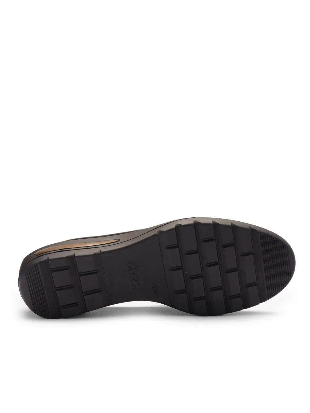 Ez a nőies bebújós cipő tökéletes harmóniában ötvözi a stílust és a kényelmet. Kiváló minőségű, puha bőrből készült, így nemcsak elegánsnak tűnik, de kényelmes is. A kivehető és puha, párnázott talpbetét az innovatív HighSoft technológiával kombinálva kiváló párnázottságot és fáradtságmentes járást biztosít – ideális hosszú napokra. A csúszásgátló talp biztos tapadást biztosít, míg a finom ék alakú sarok sportos megjelenést kölcsönöz a cipőnek. A lábfejen található kifinomult díszes kapocs divatos megjelenést kölcsönöz és sokoldalúvá teszi. Akár mindennapi viseletről, irodába vagy egy laza kirándulásról van szó – ez az időtlen cipő számos megjelenéshez és alkalomhoz illik. A kiváló minőségű kidolgozás ellenére kellemesen könnyű. Stílusos társ mindazok számára, akik értékelik a kényelmet és a dizájnt.