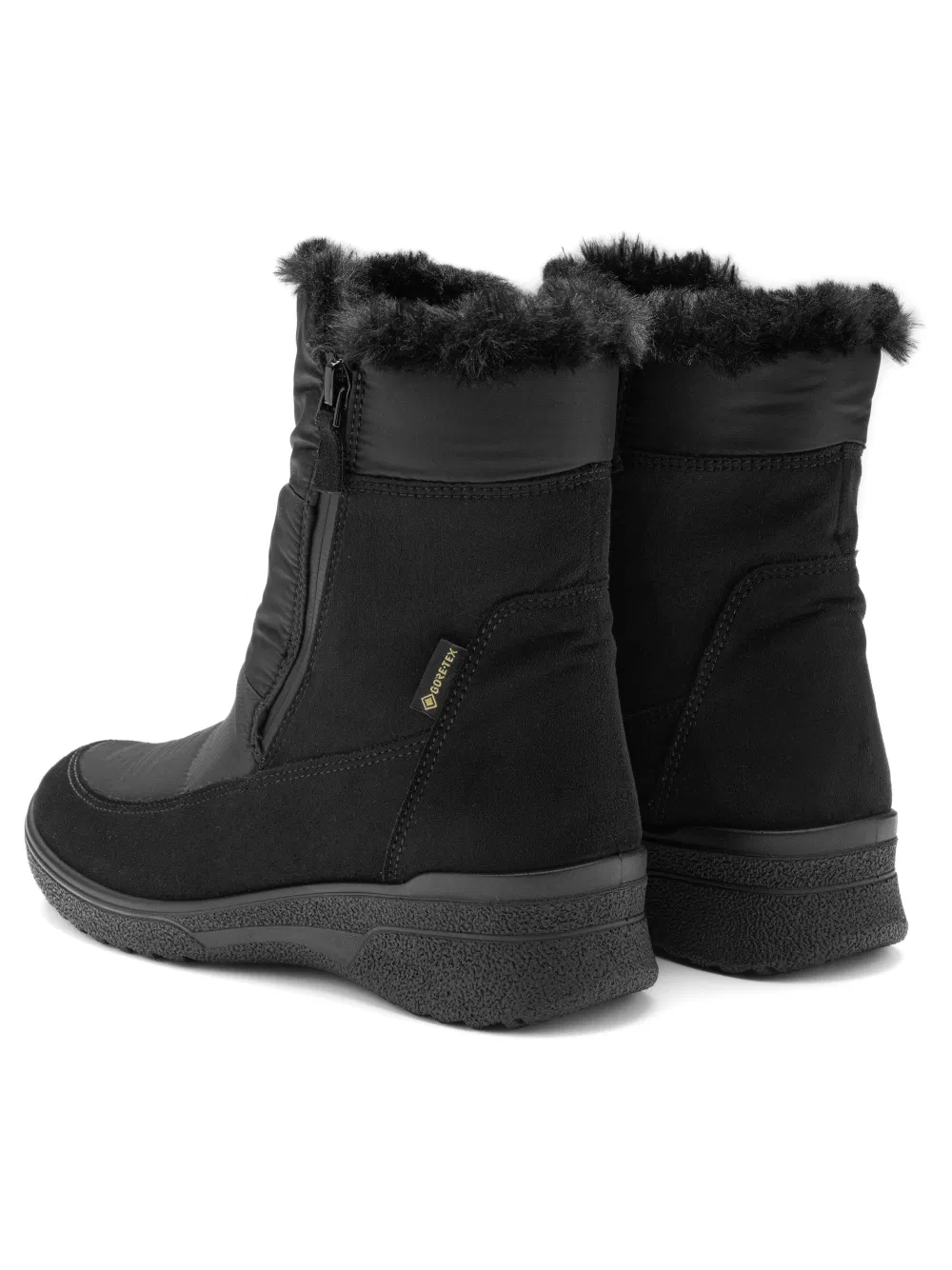 Ez a bokacsizma minden kívánnivalót maga után NEM hagy! A meleg bélés és a kivehető talpbetét hideg időben is kényelmesen melegen tartja a lábadat. A kivehető talpbetét saját ortopédiai talpbetéttel helyettesíthető. A lélegző és vízálló Gore-Tex membránnak köszönhetően nem jut be nedvesség a cipőbe. A két oldalsó cipzár különösen praktikus, gyors és könnyű felvételt tesz lehetővé. Széles szabásával (H szélesség) a csizma szélesebb lábakra is alkalmas. Lezser inggel, kardigánnal és szoknyával kombinálva ez a bokacsizma fantasztikusan néz ki. Akár vásárlásról, akár a parkban sétálásról van szó, ez a bokacsizma nagyszerű mindenes ruhadarab számos alkalomra.
