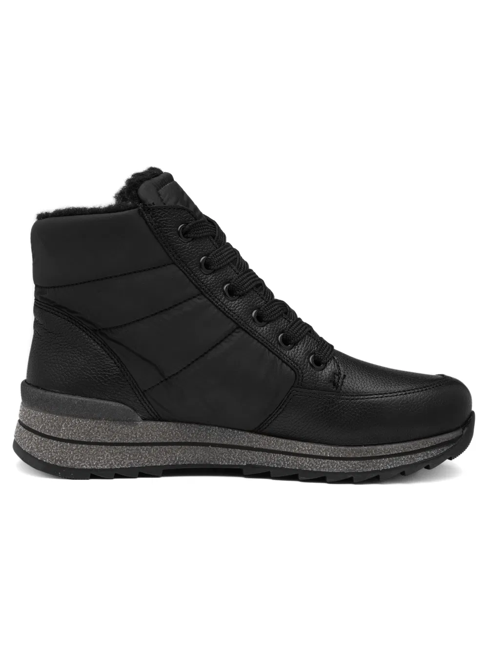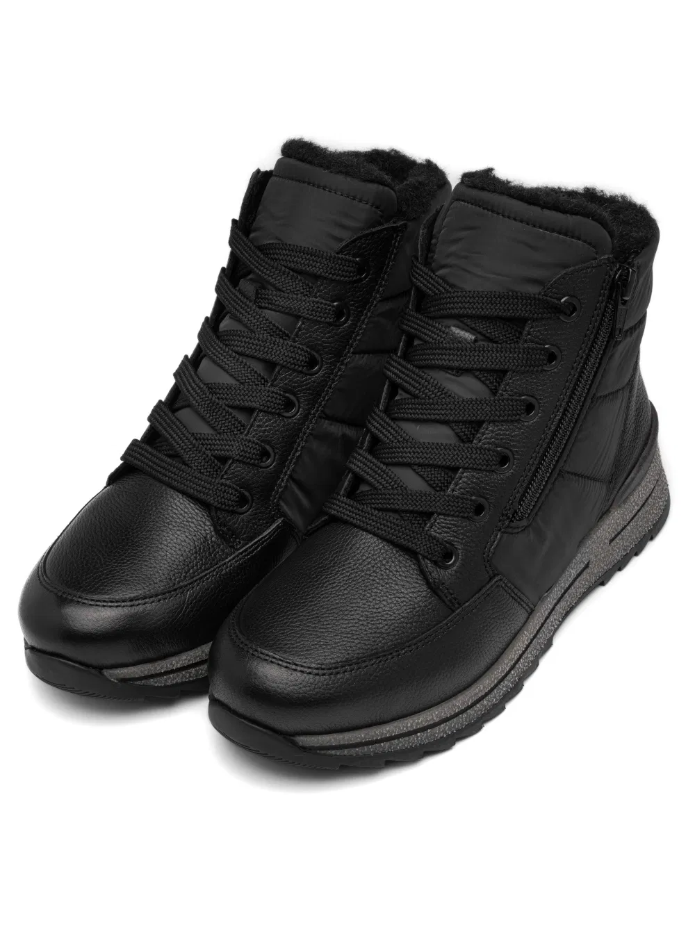Ez a modern női téli cipő a stílusos dizájnt ötvözi a maximális kényelemmel. A felsőrész kiváló minőségű bőr és szintetikus anyagok kombinációjából készült, így vonzó megjelenést kölcsönöz a cipőnek, miközben tartós is. A kényelmes, új gyapjúbélés kellemes meleget biztosít a hideg napokon. A HighSoft technológiának köszönhetően különösen puha járásérzetet tapasztalhatsz – ideális hosszú sétákhoz vagy mindennapi viselethez. A kivehető, meleg béléssel bélelt talpbetét további kényelmet biztosít, és tökéletes az egyedi talpbetétekhez. A fűző és a külső oldalsó cipzár kombinációja megkönnyíti a fel- és levételt, valamint tökéletes illeszkedést biztosít. A csúszásmentes külső talp biztos tapadást biztosít téli körülmények között is. Megbízható társ a hideg évszakban – egyszerre funkcionális, kényelmes és stílusos.