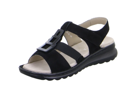 A puha bőrből készült pántok és a csinos díszítőelem igazán vonzza a tekintetet és jó tartást ad a szandálnak. A tépőzáras rögzítő megkönnyíti a fel- és levételt, míg az oldalán található két rugalmas gumiszalag gondoskodik a tökéletes illeszkedésről. A szilárdan beépített bőrborítású talpbetét különösen kényelmes és puhán párnázott. A cipő HighSoft technológiával rendelkezik, amely a puha felső anyagot kényelmes talpbetéttel kombinálja, így biztosítja a nyugodt járást. A pántok bőrrel vannak bélelve, így lágyan fekszenek a lábfejen, és nem okoznak nyomáspontokat. A profilozott talp nemcsak jó tapadást biztosít, hanem kifejezetten sportosnak és stílusosnak is tűnik. Ez a gyönyörű ara szandál tökéletes társ a forró napokon.