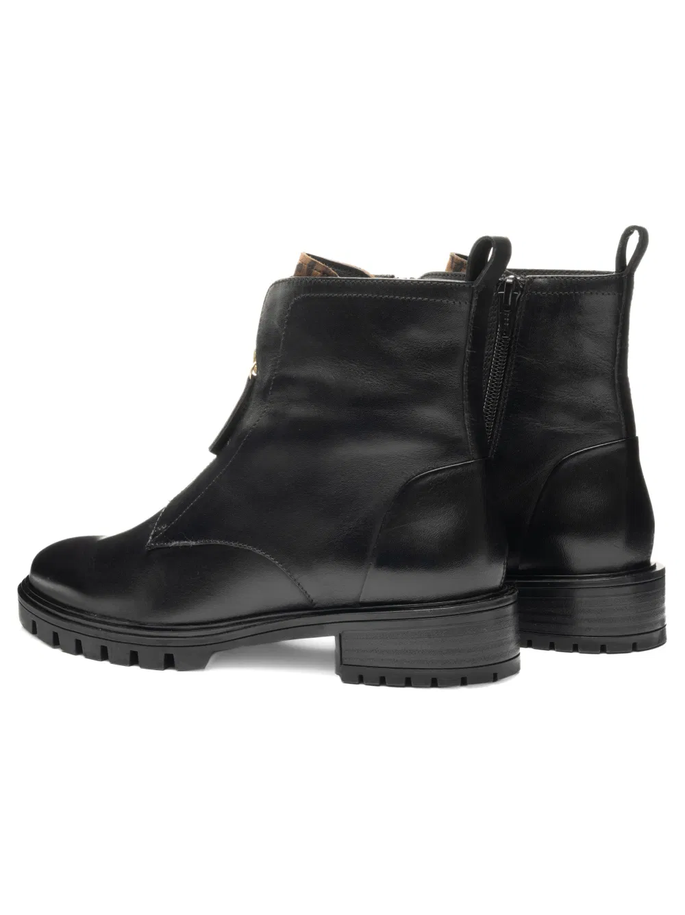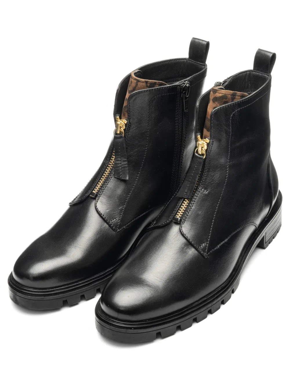 Ez a divatos női bokacsizma kiváló minőségű bőrből ötvözi a stílusos dizájnt a funkcionális kényelemmel. A meleg belső bélés kényelmes viseletet biztosít még hűvös napokon is, míg a kivehető talpbetét a High Soft béléssel kombinálva maximális kényelmet kínál – saját talpbetétre cserélhető. Praktikus és stílusos egyszerre: Az oldalsó cipzár megkönnyíti a fel- és levételt, míg a díszes elülső cipzár részben kinyitható, így egy mintás fül láthatóvá válik – kifinomult tekinteteket is gyönyörködtető látvány. A masszív profilú talp és a nőies tömbsarok biztos illeszkedést és kényelmes érzetet biztosít. Könnyű súlyának köszönhetően ez a bokacsizma különösen könnyed viselet. A száron lévő hurok még egyszerűbbé teszi a felvételt. Akár mindennapi viseletről, akár különleges alkalmakról van szó – ez a bokacsizma sokoldalú társ, divatos megjelenéssel és maximális kényelemmel.