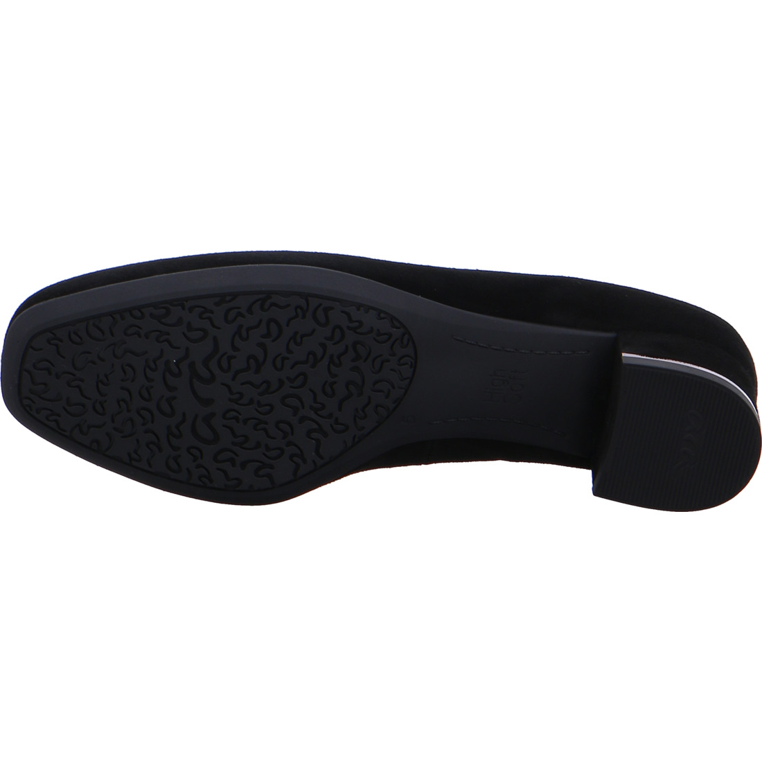 Klasszikus és elegáns ara női lábbeli, mely igazán sokféleképpen kombinálható, nagyon puha felső bőre és extra puhaságú HighSoftos belső talpkialakítása van. A fekete cipő sarkán az ezüst gyűrű elegáns és különleges megjelenést garantál, akár a hétköznapokban, akár alkalmakkor. A széles belső bőség nagy lépőfelületet kínál, és kellemes és kényelmes járást tesz lehetővé a