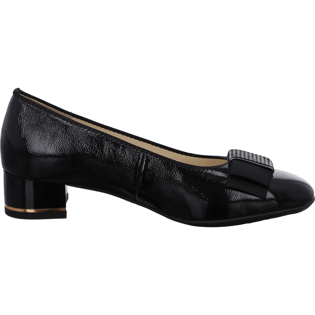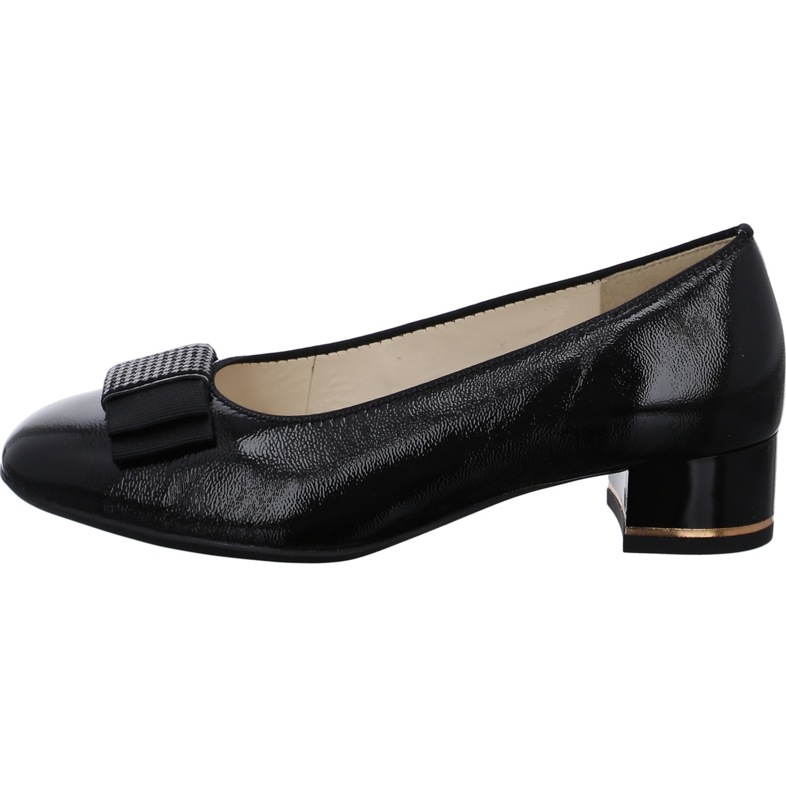 Ezek az ara nőies körömcipők szuper könnyűek és rendkívül kényelmesek. Megjelenésük különleges fénypontja az elegáns masni. A vajpuha bőr a legjobb minőségű és tökéletesen illeszkedik a lábfejhez. A bőr bélés és a szorosan integrált, bőrrel bevont talpbetét optimális lábklímát biztosít. A kényelmes és könnyed járás garanciája az innovatív HighSoft technológia, amely a puha felsőbőrt a kényelmes takarótalppal kombinálja. A széles tömbsarok jó járófelületet biztosít, és elegáns megjelenést kölcsönöz a cipőnek az arany díszítésnek köszönhetően. A csúszásmentes talp biztosítja a biztonságos lépést. Egy szoknya vagy nadrágkosztüm kombinációjával tökéletesen illeszkedik az irodába vagy egy vasárnapi múzeumi kiránduláshoz is.