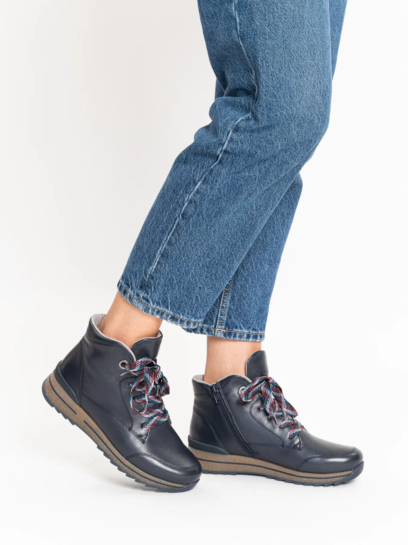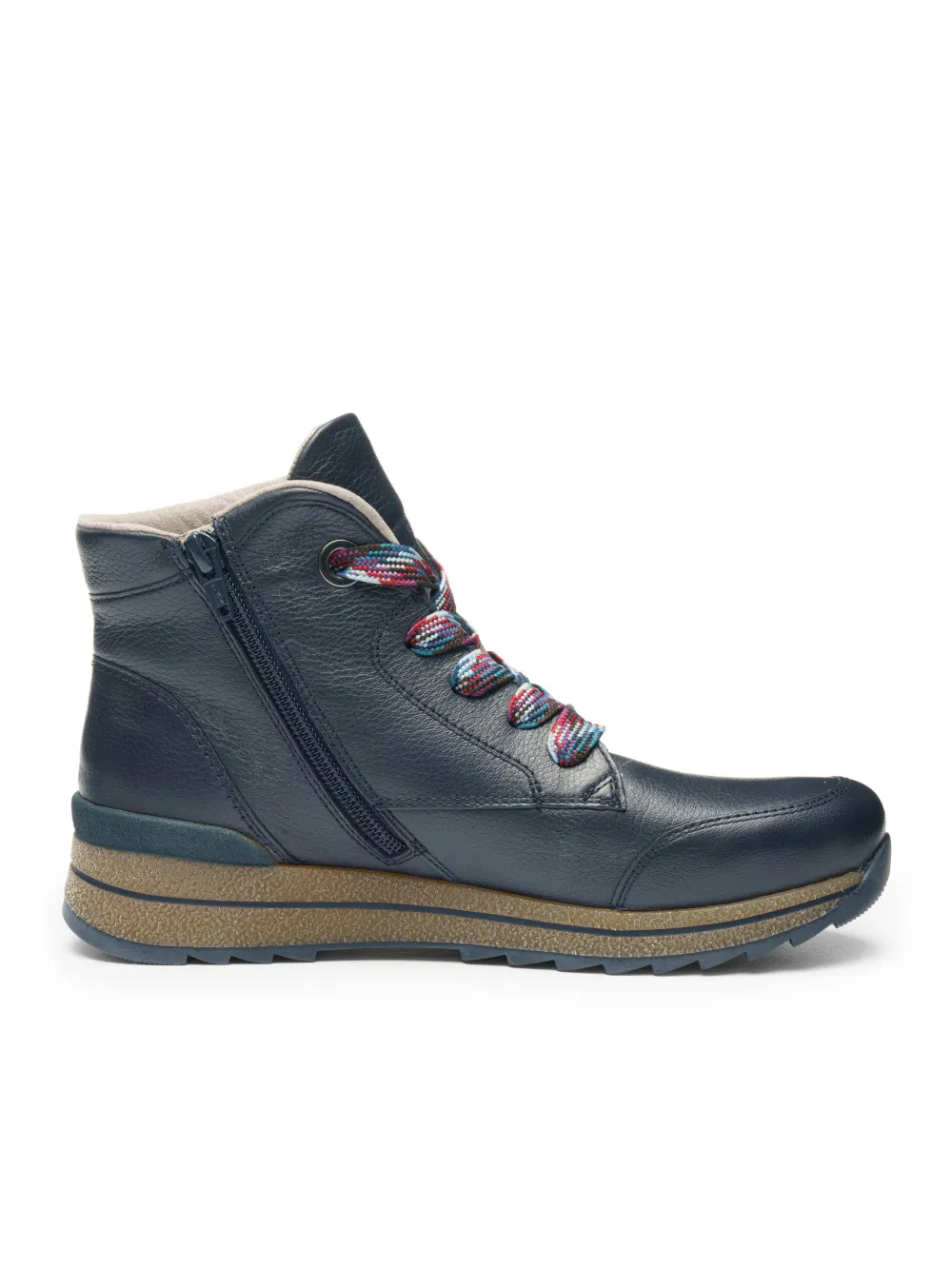 Ez a magas szárú csizma igazi különlegesség! A masszív bőr felsőrésznek köszönhetően ezek a cipők első pillantásra lenyűgözőek. Meleg gyapjúbélésével ez a modell tökéletesen alkalmas viselet a hideg időkben. A kivehető talpbetét frottír borítású, és könnyen eltávolítható, valamint saját talpbetéttel cserélhető. A cipő a bevált HighSoft technológiával rendelkezik, amely garantálja a puha érzetet. A kényelmes szélesség kellemes járásélményt biztosít, megakadályozva a nyomáspontok kialakulását. A stílusos fűző vizuálisan kiemeli a megjelenést, míg a cipzár gyors fel- és levételt tesz lehetővé. A szár szélén található szemet gyönyörködtető fűzőlyukak is kiemelik a cipő divatos megjelenését. A sportos, csúszásmentes külső talp teszi teljessé a jó közérzetet. Ezek a divatos cipők tökéletesen illenek kopott farmerhez és lezser inghez. Semmi sem állhat útjába egy hosszú sétának a városi parkban, vagy egy látogatásnak a kedvenc kávézódban ezekkel a magas szárú csizmákkal!